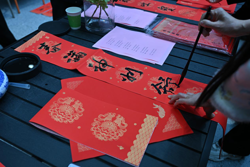 壓紙、蘸墨、揮筆、走字……在鼎盛美寓和開元美寓的共享空間里,書法家們揮毫潑墨、筆走龍蛇,一個個寓意吉祥的“福”字、一副副飽含美好祝福的春聯(lián)紛紛呈現(xiàn)在大家眼前,為即將到來的蛇年春節(jié)增添了濃濃的喜慶氛圍。