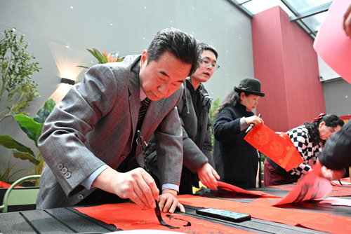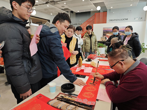 活動當(dāng)天,鄭州市文聯(lián)的書法家們受邀來到現(xiàn)場。他們個個精神飽滿,手執(zhí)毛筆,在一張張紅紙上揮灑自如,書寫著寓意深遠(yuǎn)的新年序言。這些序言既是對過去一年的總結(jié),也是對新年的美好期許。書法家們的精彩表演贏得了現(xiàn)場觀眾的連連稱贊,租戶們紛紛表示:“書法家們寫的字真是太好了!‘福’字看著就喜慶,春聯(lián)的寓意也都非常美好。”